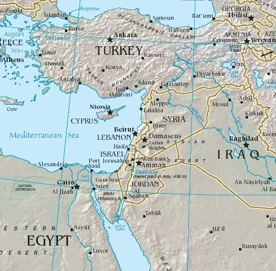 Immagine satellitare del Medio Oriente. 2009, Nasa wikipedia commons