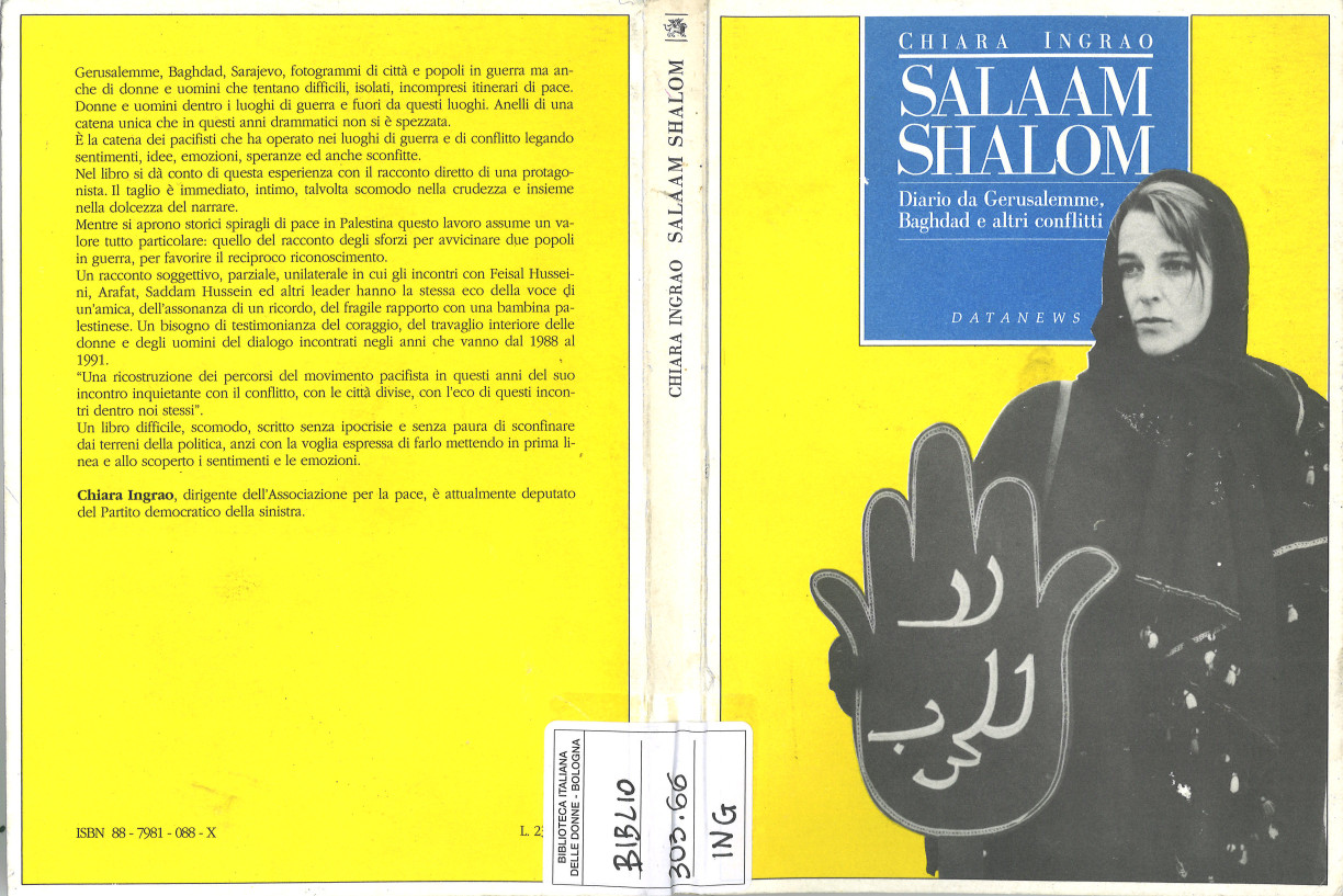 L’anno successivo, nel 1989, sullo sfondo di uno scenario in rapido mutamento e con il prefigurarsi di un nuovo sistema di rapporti sul piano globale, a seguito della fine dei blocchi, l’impresa delle femministe italiane s’innestò in un allargamento complessivo delle iniziative promosse dall’insieme dei movimenti pacifisti. La più rilevante fu “1990 Time for Peace” (doc.1) organizzata a Gerusalemme tra il 29 e il 31 dicembre  per salutare il nuovo anno all’insegna dell’avvento di un tempo di pace. Al suo interno fu organizzata una giornata delle donne. Le cronache di quelle giornate con l’interventi di repressione da parte della polizia israeliana furono un primo segnale delle minacce incombenti sulla ricerca di politiche di pace (doc.2 e 3). Nell’agosto 1990 l’invasione del Kuwait da parte di Saddam Hussein dette inizio al processo che portò alla guerra del Golfo e all’intervento statunitense in Iraq, in una guerra che vide il sostegno militare di molti paesi tra cui l’Italia. Di fronte alla vicenda del Golfo, e alla partecipazione italiana alla coalizione militare, si diffuse anche nel nostro paese, sull’esempio israeliano, il movimento delle Donne in nero, destinato a divenire, nel corso degli anni, uno dei principali riferimenti dell’intreccio tra femminismo e pacifismo. Nell’immediato si moltiplicarono iniziative e manifestazioni in opposizione ad una guerra nuova, anche per le sue caratteristiche tecnologiche, e l’impatto mediatico. Contemporaneamente, la tessitura della spola tra “qui” e “là”, filo conduttore di Visitare luoghi difficili, non s’interruppe. Proseguì la realizzazione dei progetti tra cui il Centro delle donne di Nablus, nato per iniziativa di Sahar Khalifah, narratrice nel suo romanzo più noto, La svergognata, della storia della presa di coscienza personale e politica di una donna palestinese (doc.4)Il 1990 si concluse con un seminario e un grande concerto per ridar voce alla pace delle donne in Israele e Palestina attraverso quella di Gianna Nannini (doc.5).